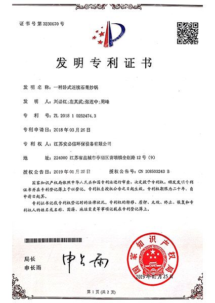 一種臥式連續(xù)石膏炒鍋發(fā)明專利