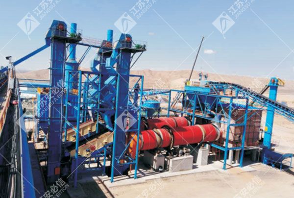 單筒回轉(zhuǎn)干燥機(jī)是一種最常見的石英砂干燥設(shè)備,烘于筒與水平面呈一定傾斜角度布置并作回轉(zhuǎn)運(yùn)動(dòng)。工作時(shí),濕基石英砂從轉(zhuǎn)動(dòng)的烘干機(jī)一端投入后,在筒內(nèi)揚(yáng)料板翻動(dòng)下,石英砂在筒內(nèi)均勻分散并形成料幕,與并流的熱煙氣充分接觸,完成熱交換,從而實(shí)現(xiàn)石英砂烘干。同時(shí),石英砂在傾斜簡體內(nèi)揚(yáng)料板和熱氣流的作用下,可調(diào)控地運(yùn)動(dòng)至烘干機(jī)尾部并卸出。